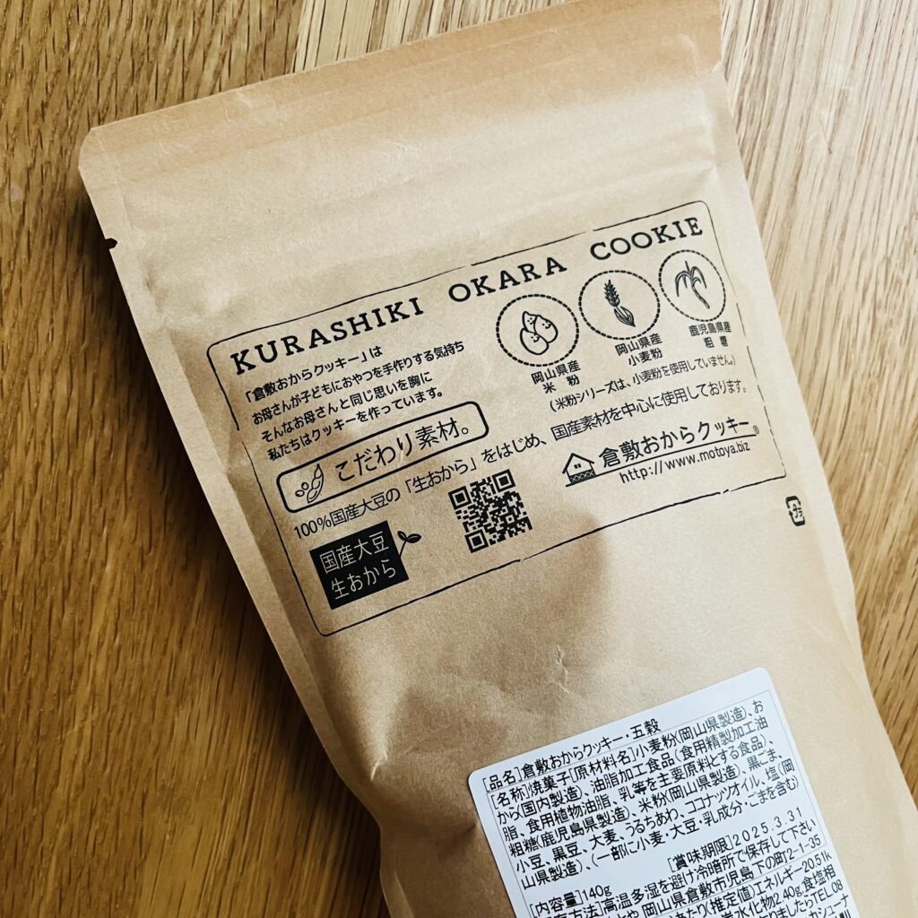 国産大豆の生おから、岡山県産の米粉と小麦粉、ココナッツオイルなどこだわりの食材を使用した低カロリークッキーです。