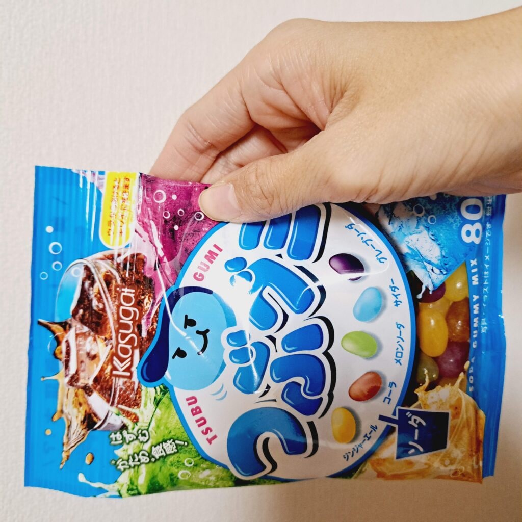 ある日、夫が会社帰りに駅の高架下のスーパーに寄って帰ってきた時のこと。レジに向かう途中で見つけた「つぶグミ」。TOP画の左下、袋に「Kasugai」と書いてある、春日井製菓のもの。