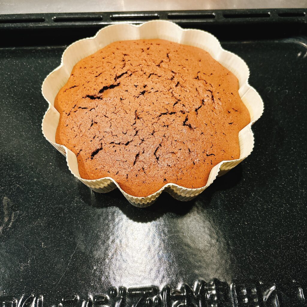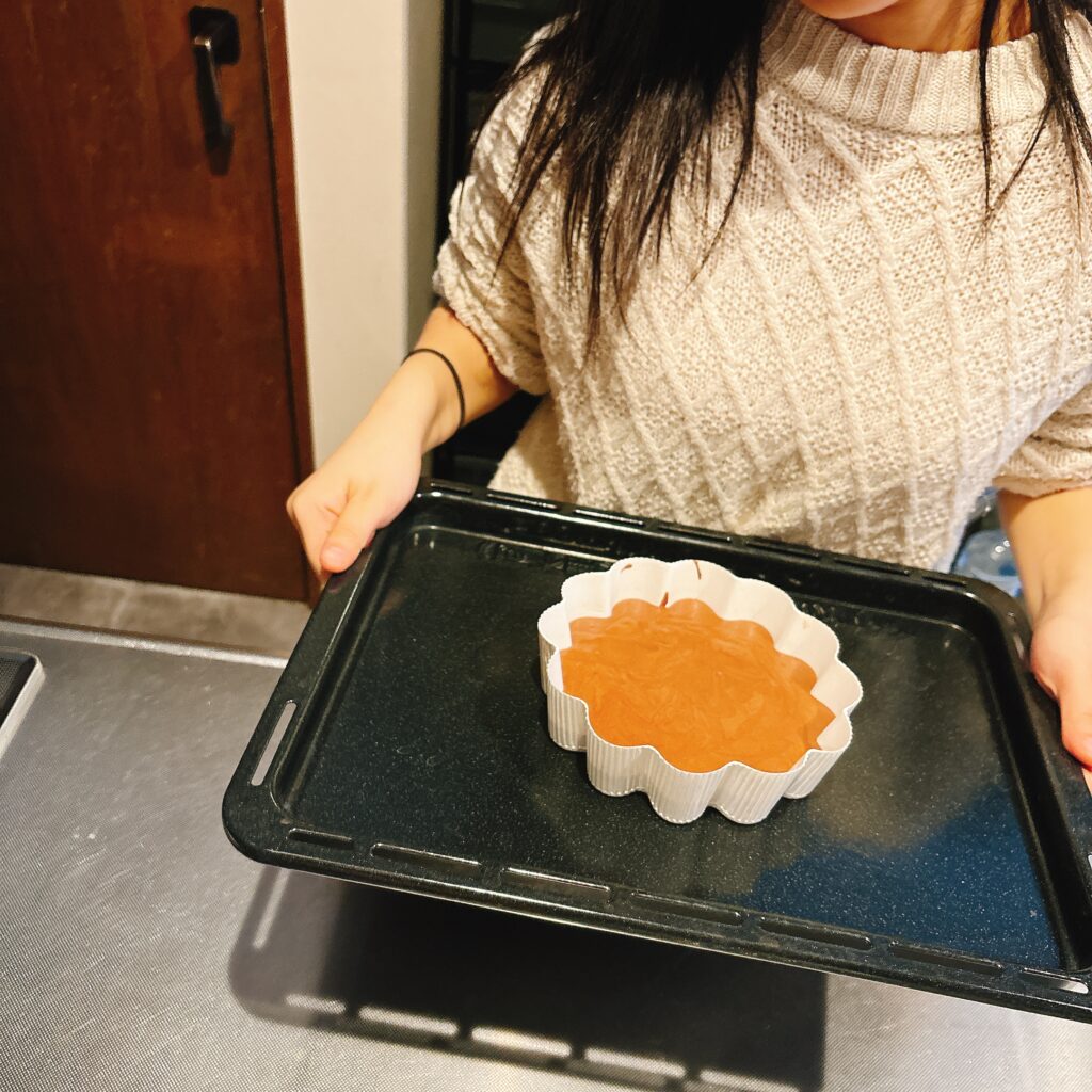 早い!!付属の型に流してオーブンに入れます。焼き上がりまで20〜25分。