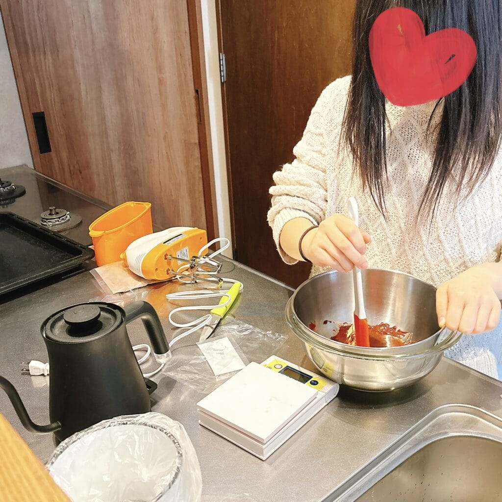 箱の説明を読みながら黙々と作る娘。湯煎の技術知ってたのか🥹昔から泥遊びのプロであった
