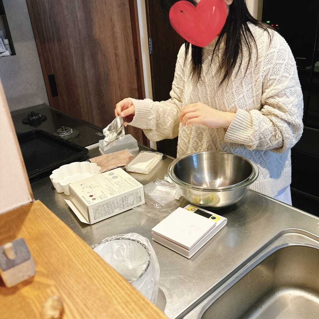キットの材料+卵、バター、牛乳は自分で用意。キットは事前に計量されているので、すぐ作りだせる。