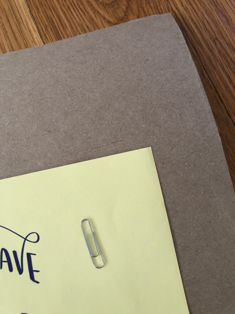 厚紙に貼り付けると後で変更できないので、厚紙にすこし切り込みを入れます。