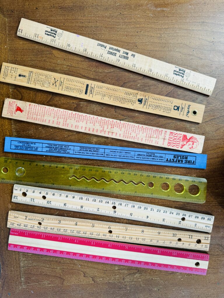 ギャラリーなどで絵を展示する際、キャンバスフレームだったら簡単なのですが、紙に書いた絵をたくさん展示するのに全部額装してたらコストも運送も大変すぎるので、クリップボードや木製のものさしを駆使してあらゆるサイズの絵を展示したことがあります。我が家にはたくさんのクリップ ボードとお気に入りのものさしがたくさんあるので大活躍です。