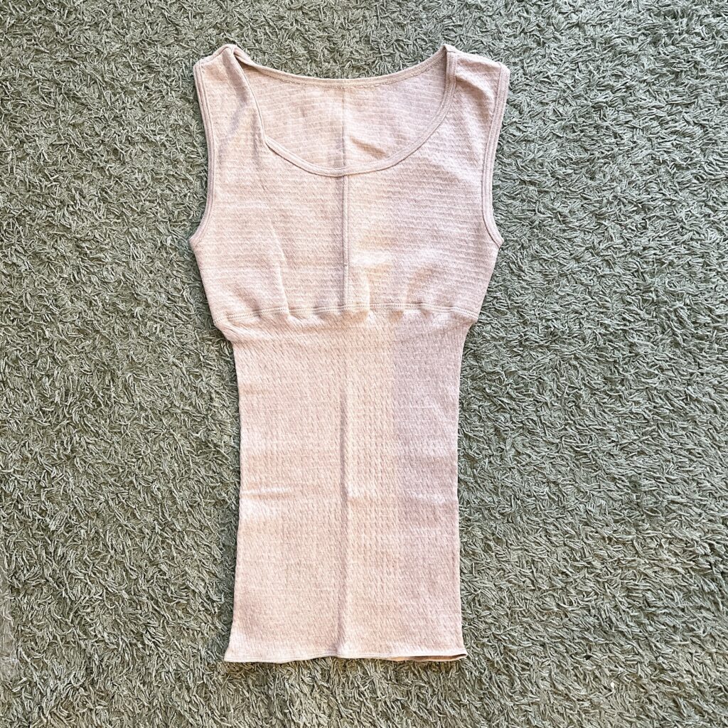 早速着てみると、生地がとても柔らかく肌触りがとても良い♡暖かいです!着丈が長いので、お腹の下まですっぽり隠れる長さで冷えからお腹を守ってくれています。