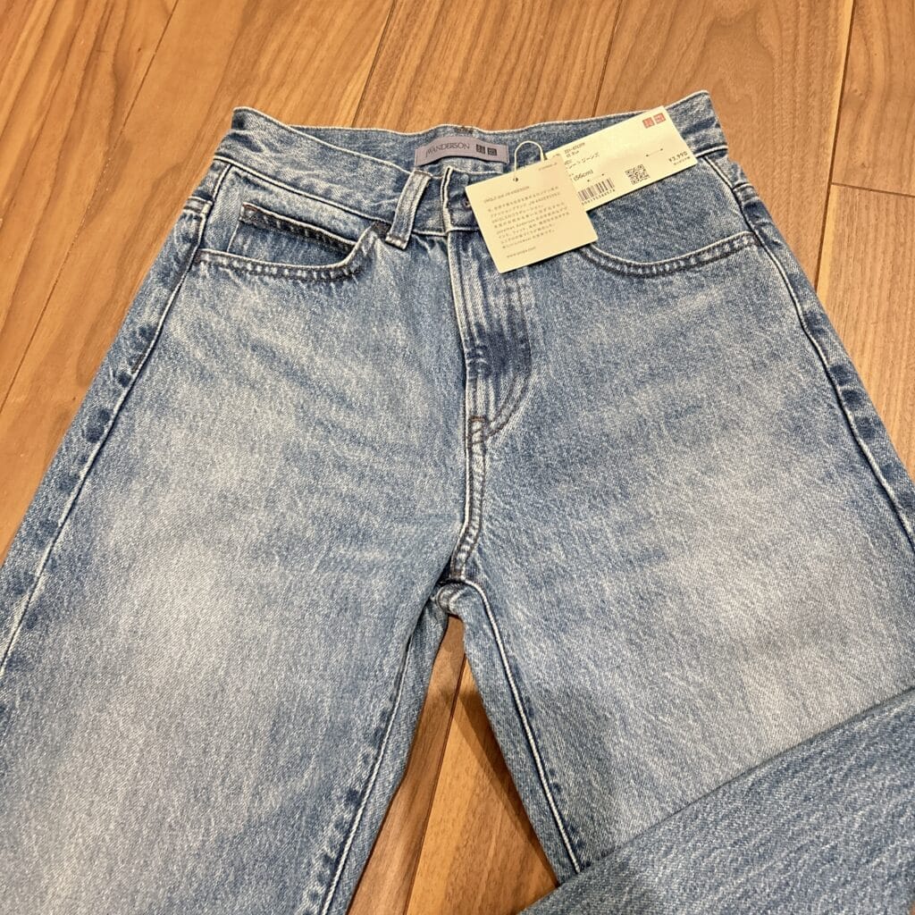 ワイドパンツが主流の現在、少し飽きたけどスキニーも違うし、という気分にぴったりのストレートながらも少しワイドな形が今っぽいです。カラーは4色展開で、白1種とあとはブルーデニム3種。私は真ん中の濃さを選びました。意外と持っていなかった色だったのも即決の理由。あとは、前から見たウエスト~足の付け根周りのラインがすごくすっきりしているのがポイントだと思いました。そこまでハイウエストではないのに、スッと縦長に見せてくれます。