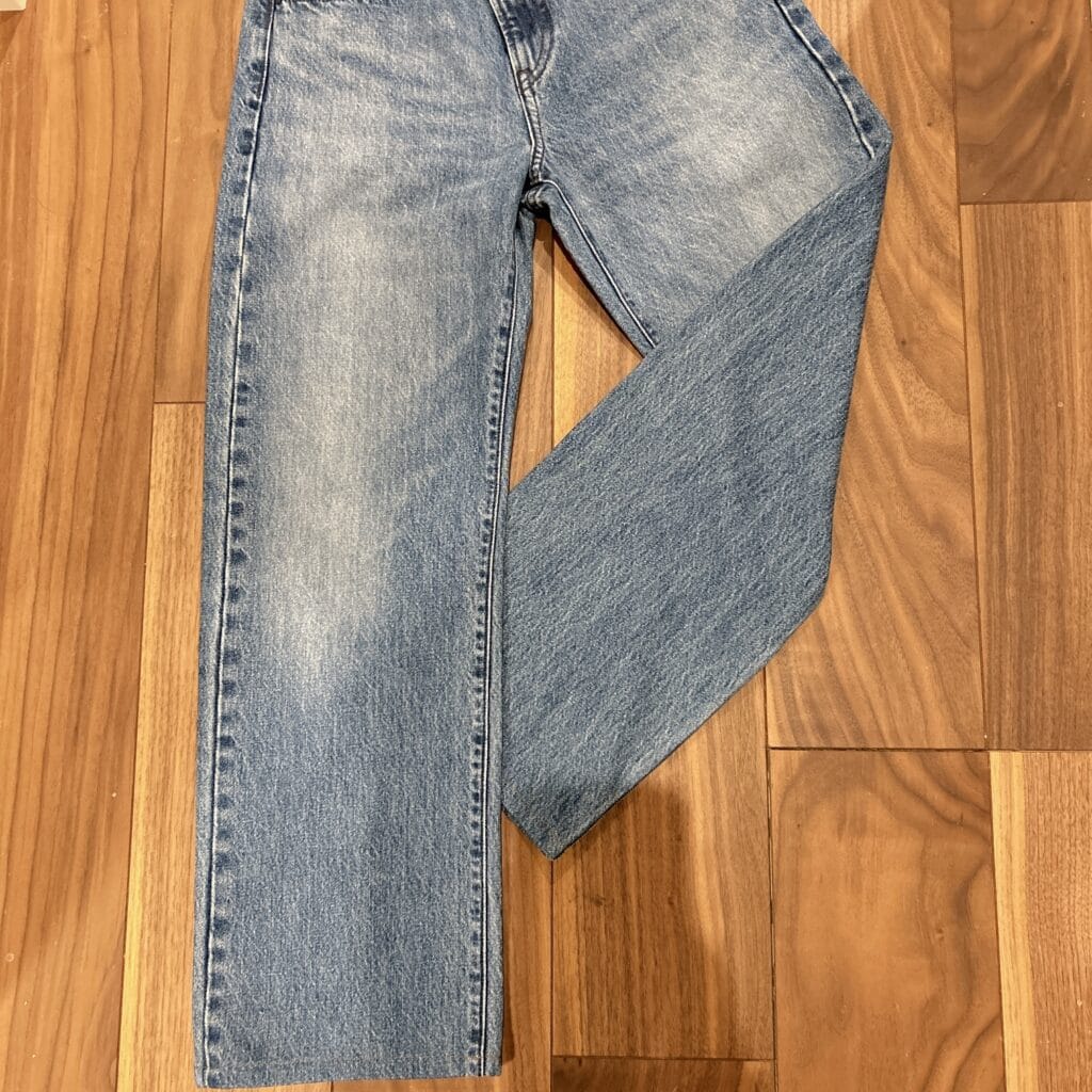 この横からのラインが私は特に好きです。程よい太さのまっすぐデニム。(試着の付き添いに飽きた娘もおります)
