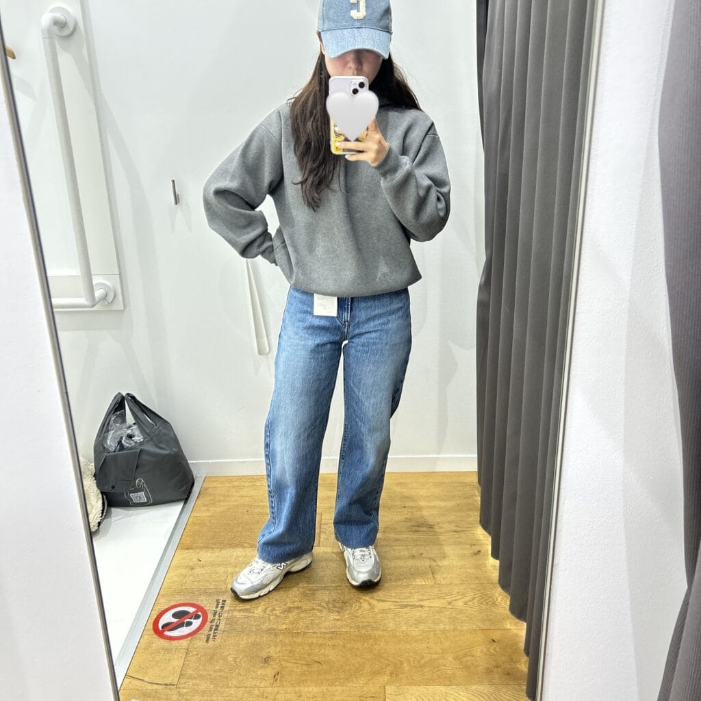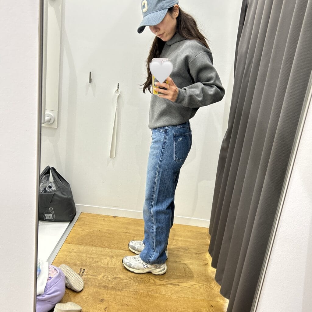不完全燃焼で試着室を出ようとしたところ、隣から出てきたお姉さんが履いているデニムがめちゃくちゃ形キレイ!!と釘付けになり、私も同じデニムを試着することに。5分で裾上げまでお願いして即決のお買い物となりました♡