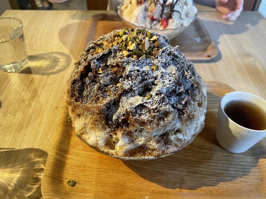 私は「モカチョコナッツ」を。濃厚なチョコレートクリームがふわふわかき氷で良い感じに薄まって、サクサク食べられます!クラッシュナッツの食感と風味が良いアクセントに♩確か昨年はバレンタインシーズンのかき氷を食べそびれているんですよね…。2年ぶりに頂けて大満足です♡