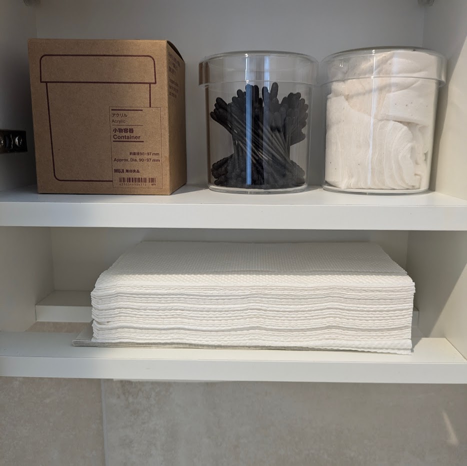【無印良品】アクリル小物入れを使用して、綿棒、コットンセットを収納しました。