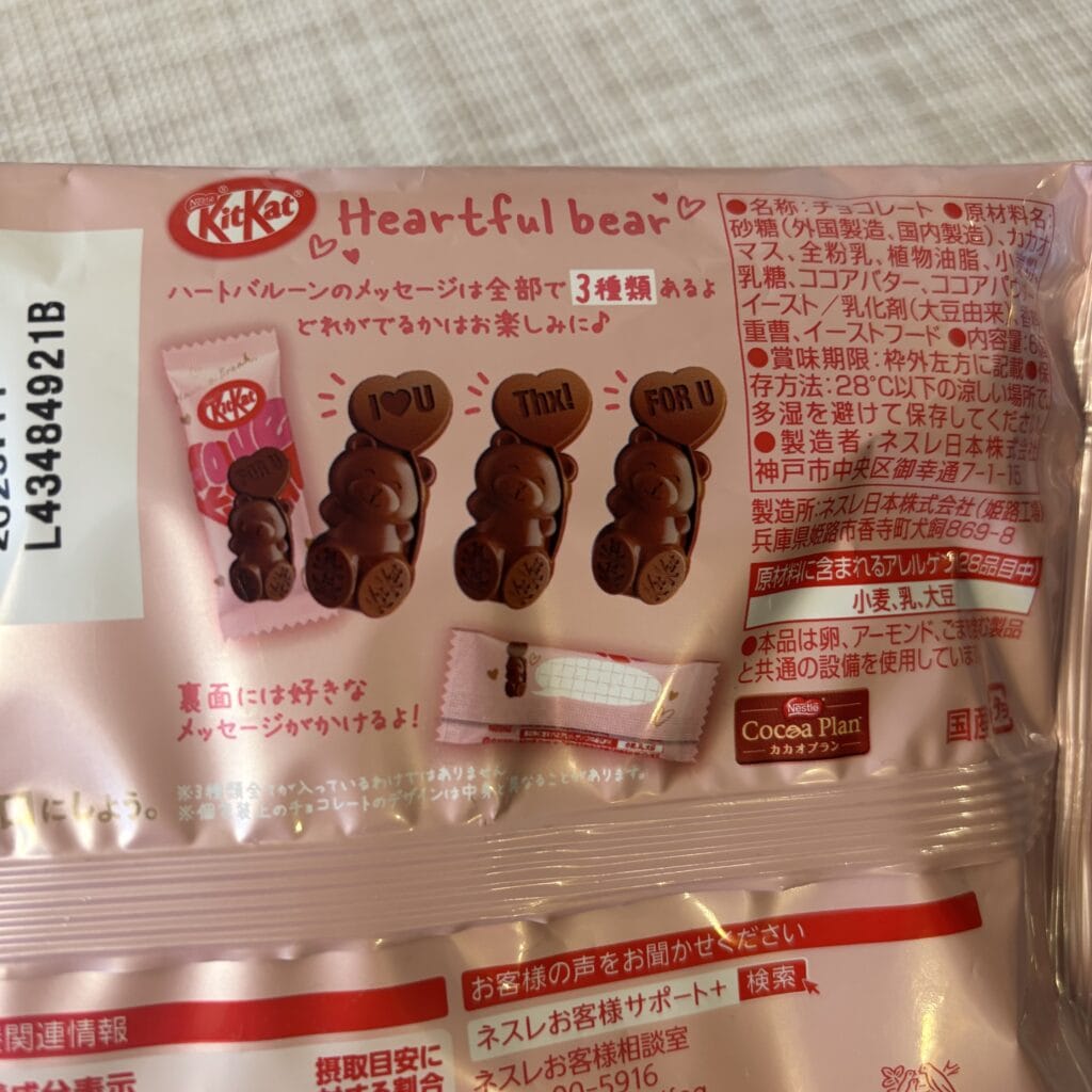 中には、くまちゃんの形のキットカットが入っています。