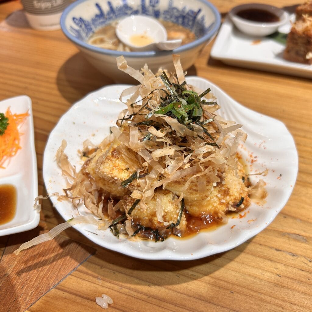 こちらは揚げ出し豆腐のようなものでした。(メニュー名は忘れました…)あられ?のような揚げ衣がお美味しかったな〜。(こちらも娘食べれました!)