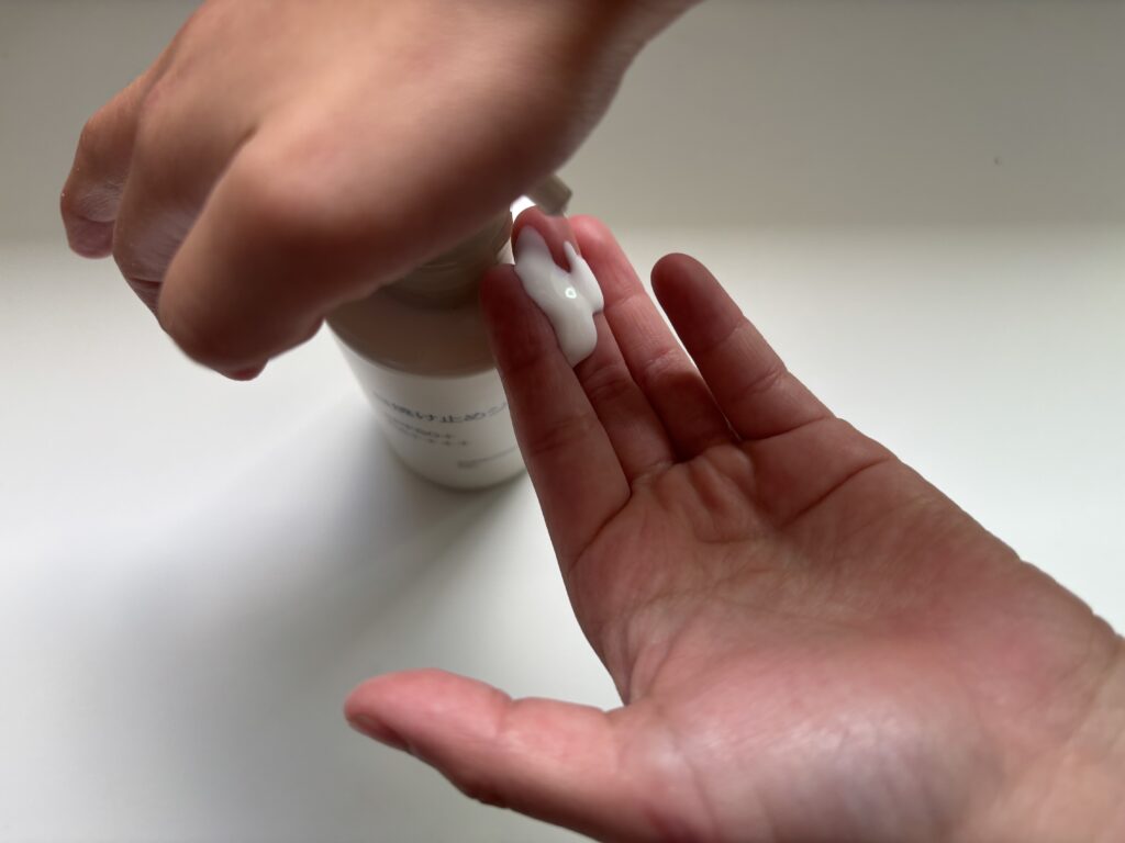 見た目は白い液体ですが、しっかり伸ばさないと白く塗りむらができて