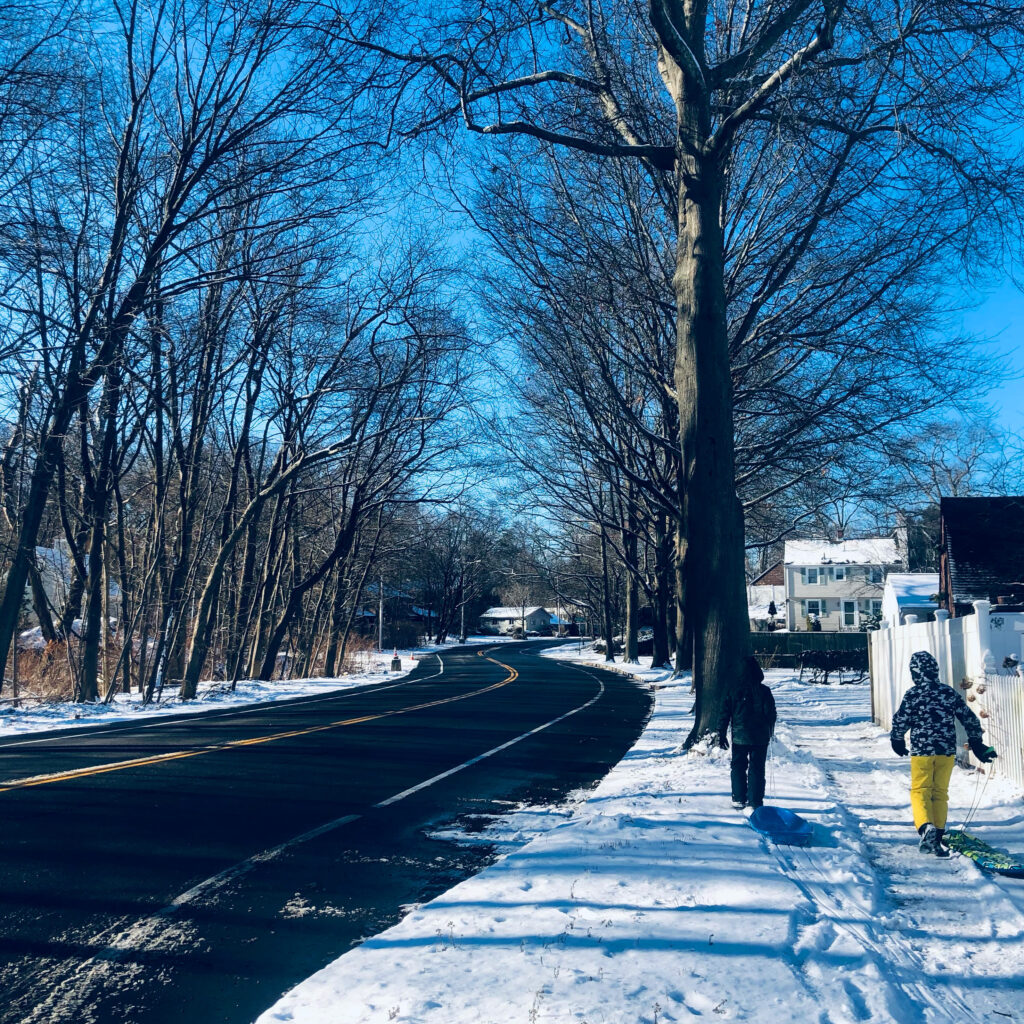 歩道は雪かきしてあるのにわざわざ雪の中を歩きたいのがボーイズというモノ。