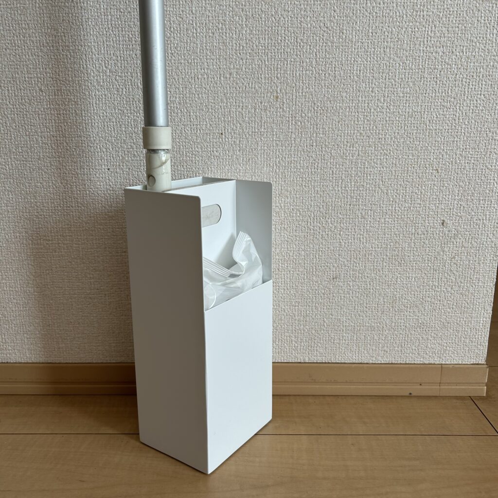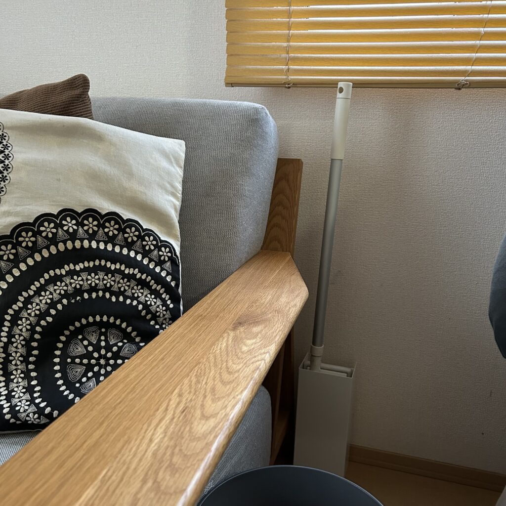 今までフローリングワイパーは玄関に立て掛けてました。ちょっと触れるとパタンって倒れ…