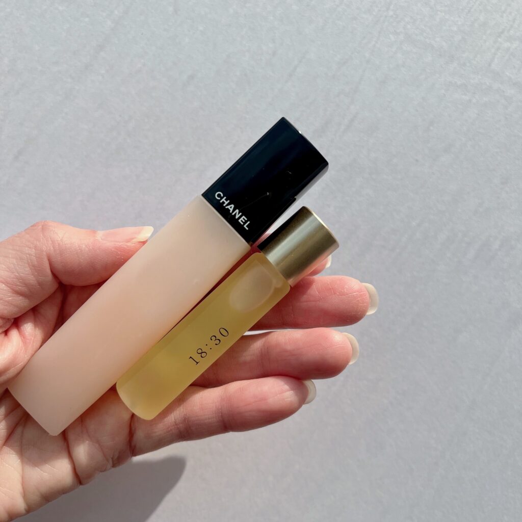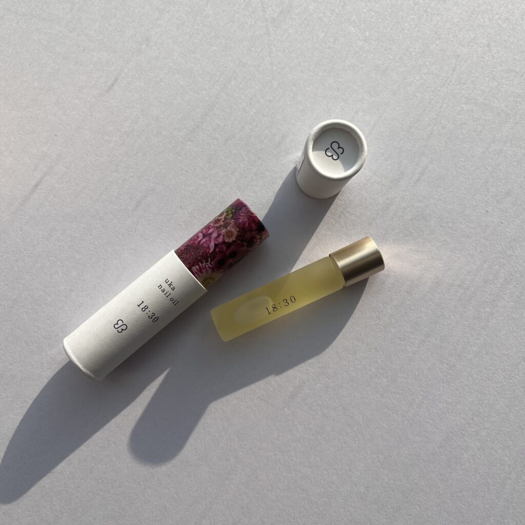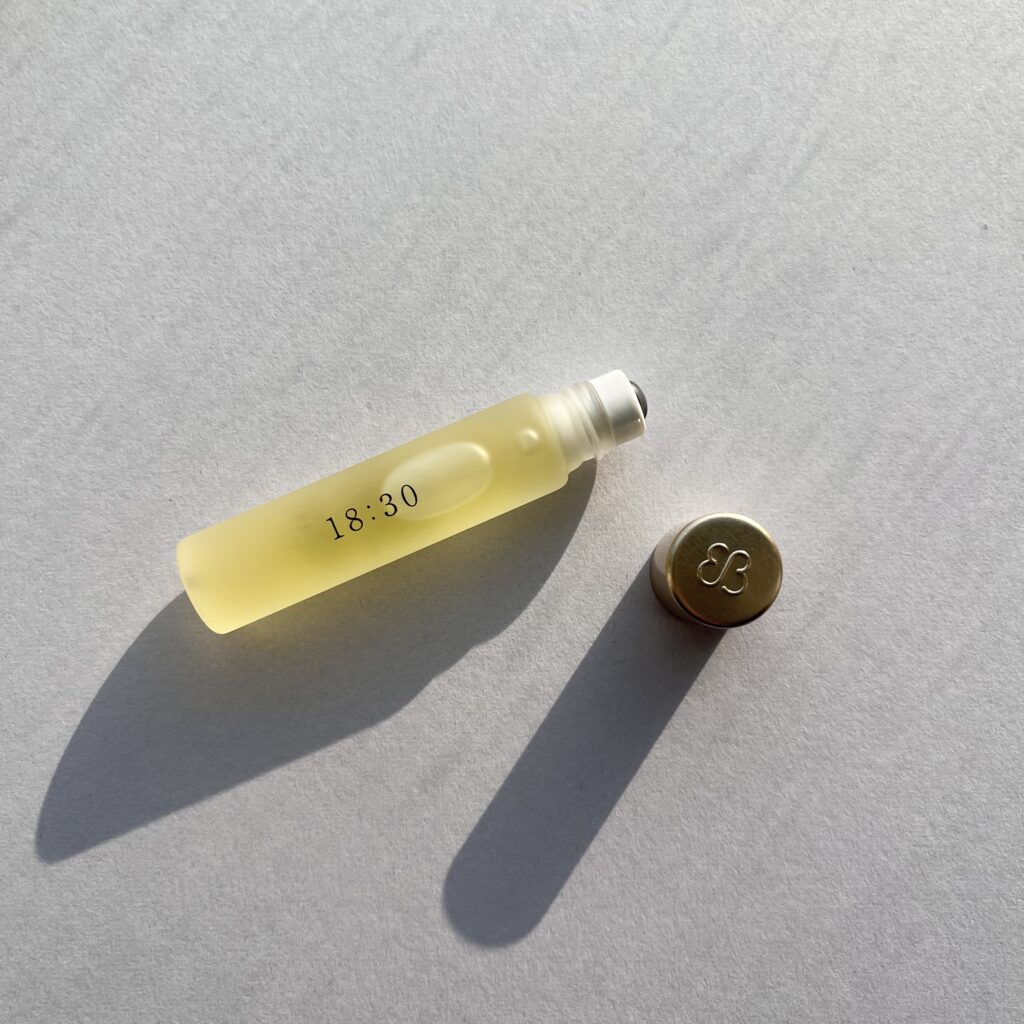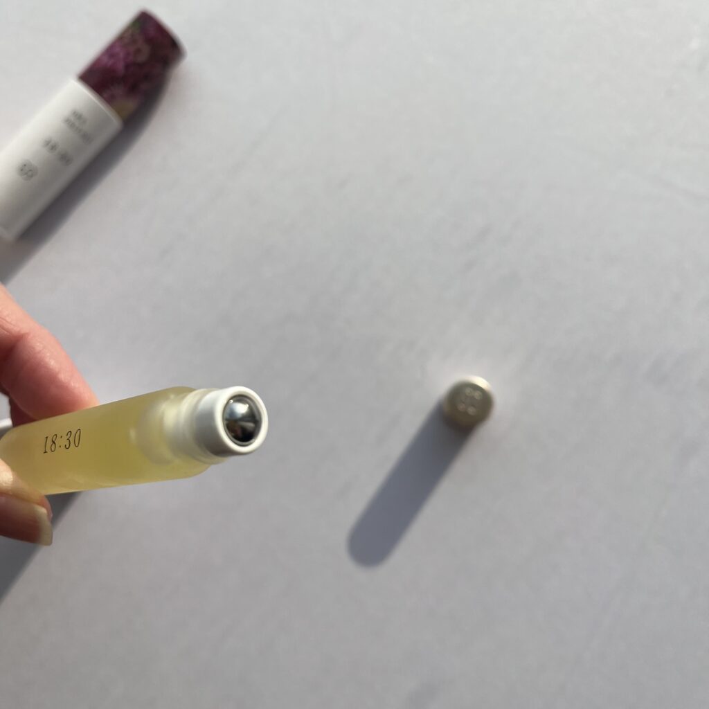 私のは「18:30」。アルガンオイル配合、ローズとゼラニウムの香りで、ウッディーな香りが好きな私はつい塗りながら手を近づけてスーッと嗅いでしまいます。
