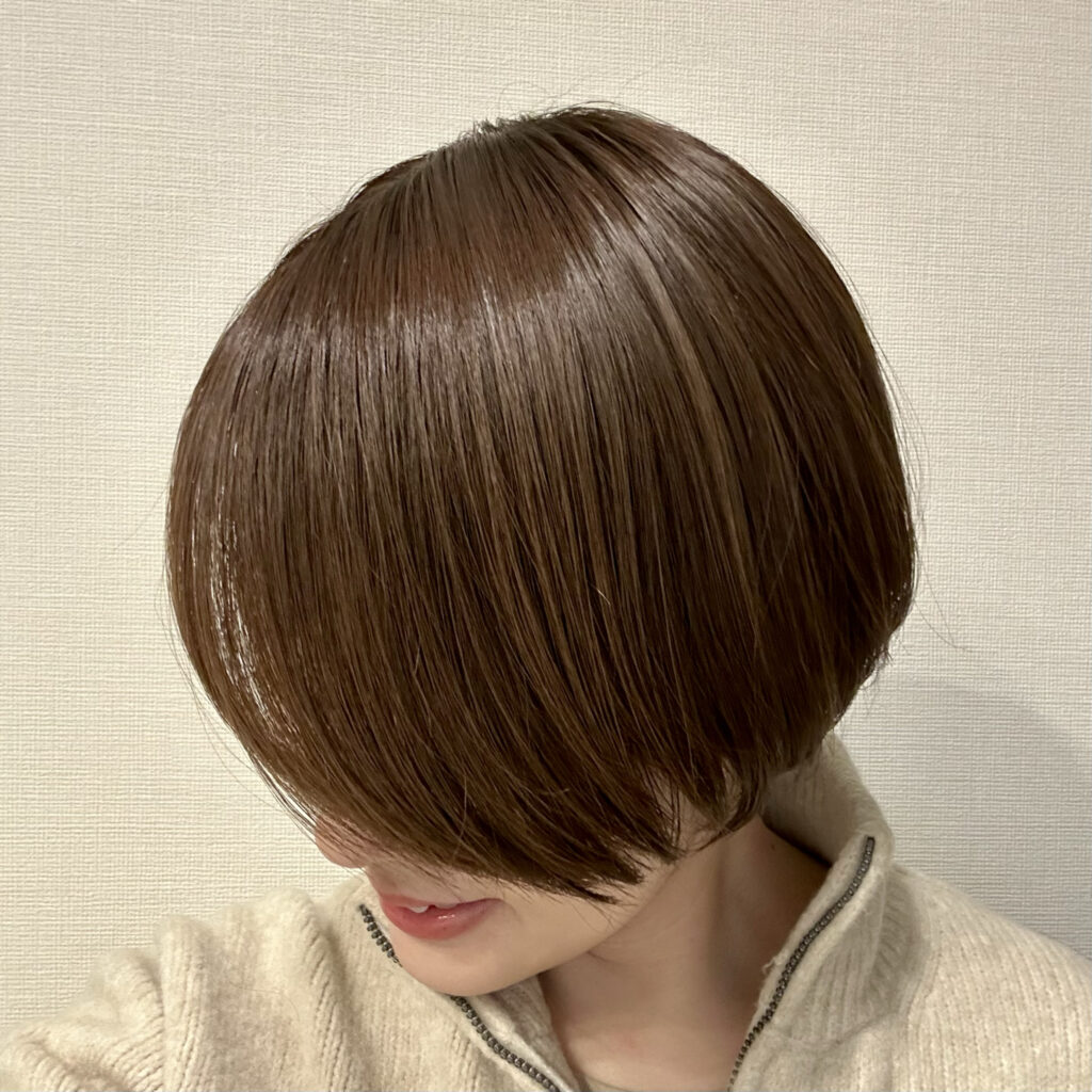 朝マエガミスティックでヘアセットし、1日過ごした日の夕方の写真も撮ってみました。(後頭部の毛先にのみヘアオイルを塗布しましたがその他のスタイリング剤は不使用です。)