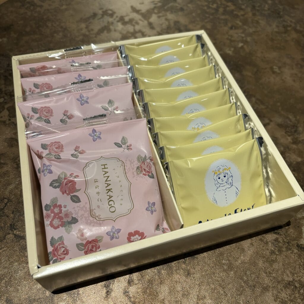 フィナンシェにはナッツが入っていて、チョコサンドのチョコはクリームチーズ風味のホワイトチョコでした!間違いないやつです