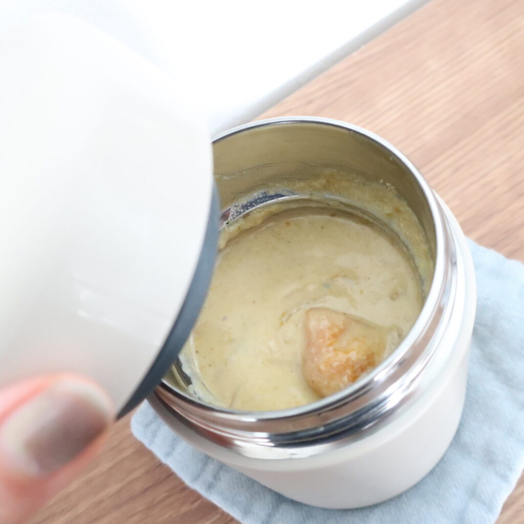 前日夜のメニューに麺や卵を足して温め、スープジャーに入れるアイデアが取り入れやすくて最高!