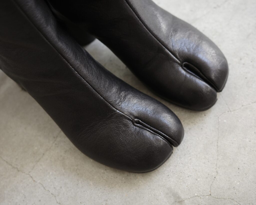 つま先の丸み、親指部分からのレザーの切り替え、絶妙な筒丈・・・そこかしこに足袋らしさが宿っています。