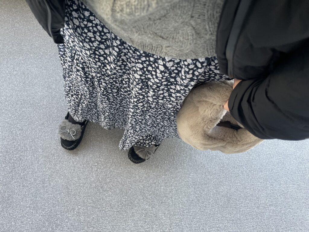 この日は高校生・中学生ママ達とランチ。いつかのGUのカレッジスウェットと、いつかのGUのバルーンパンツで上下GU。下に無印良品の「首のチクチクをおさえた」シリーズのハイネックリブセーターを仕込んでいます。