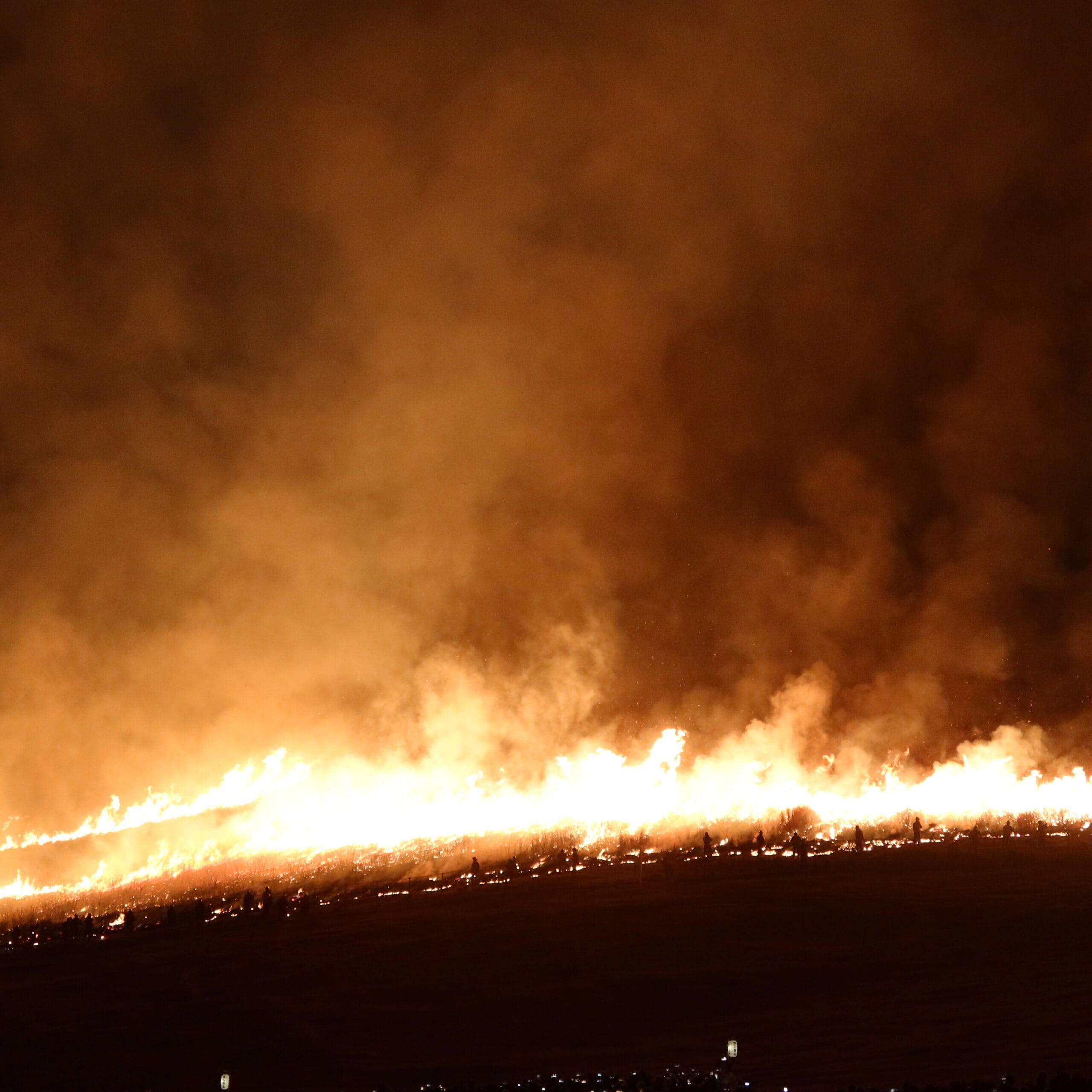 写真も載せますが、写真では伝わりにくい迫力の山焼き。