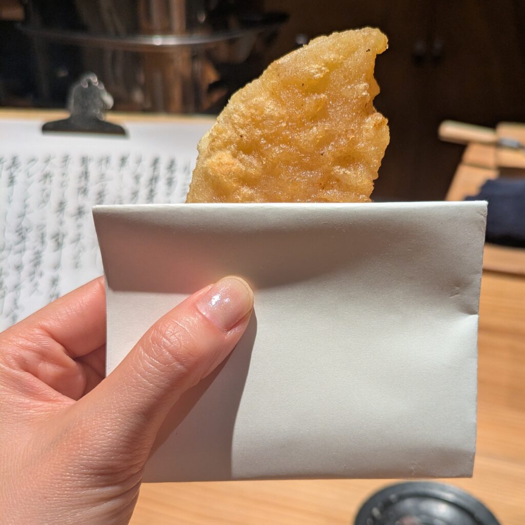 特に心に残ったのは、「聖護院かぶらの天ぷら」かぶらをうまみたっぷりの出汁で煮て、それを天ぷらにするという、シンプルながら手間のかかった逸品でした。