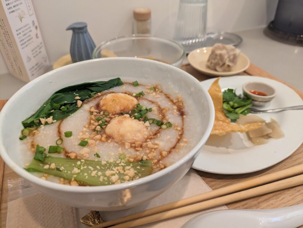 とろっとろに煮込まれたお粥にぷりぷりの海老団子。ボリュームたっぷりでしたが、揚げワンタンなどで味変もできてぺろり。デザートの甘さ控えめの豆花もこれまた、とても美味しかったー!