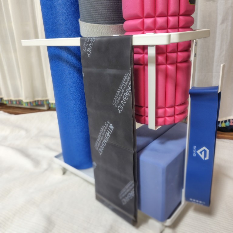 常に収納場所を探っていたヨガブロックまで綺麗に収まってくれました!他のものと組み合わせて使うことも多いので、1箇所にまとめられるのは嬉しいです!