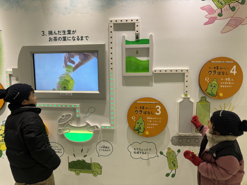 おなじみお~いお茶の歴史や、豆知識などをさまざまな展示で実際に見て、触れて体験できる施設になっています。