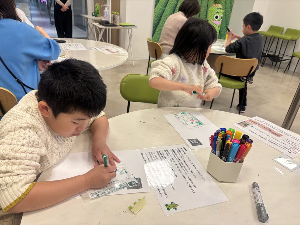 この日はあらかじめ予約していたお~いお茶オリジナルボトル創作体験にみんなで参加しました。