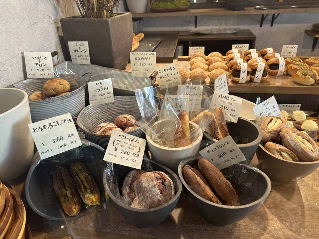 こぢんまりとした店内には美しいパンがズラリと並んでいました。平日の11時ごろでしたが、人気のパンはすでに売り切れのものも!