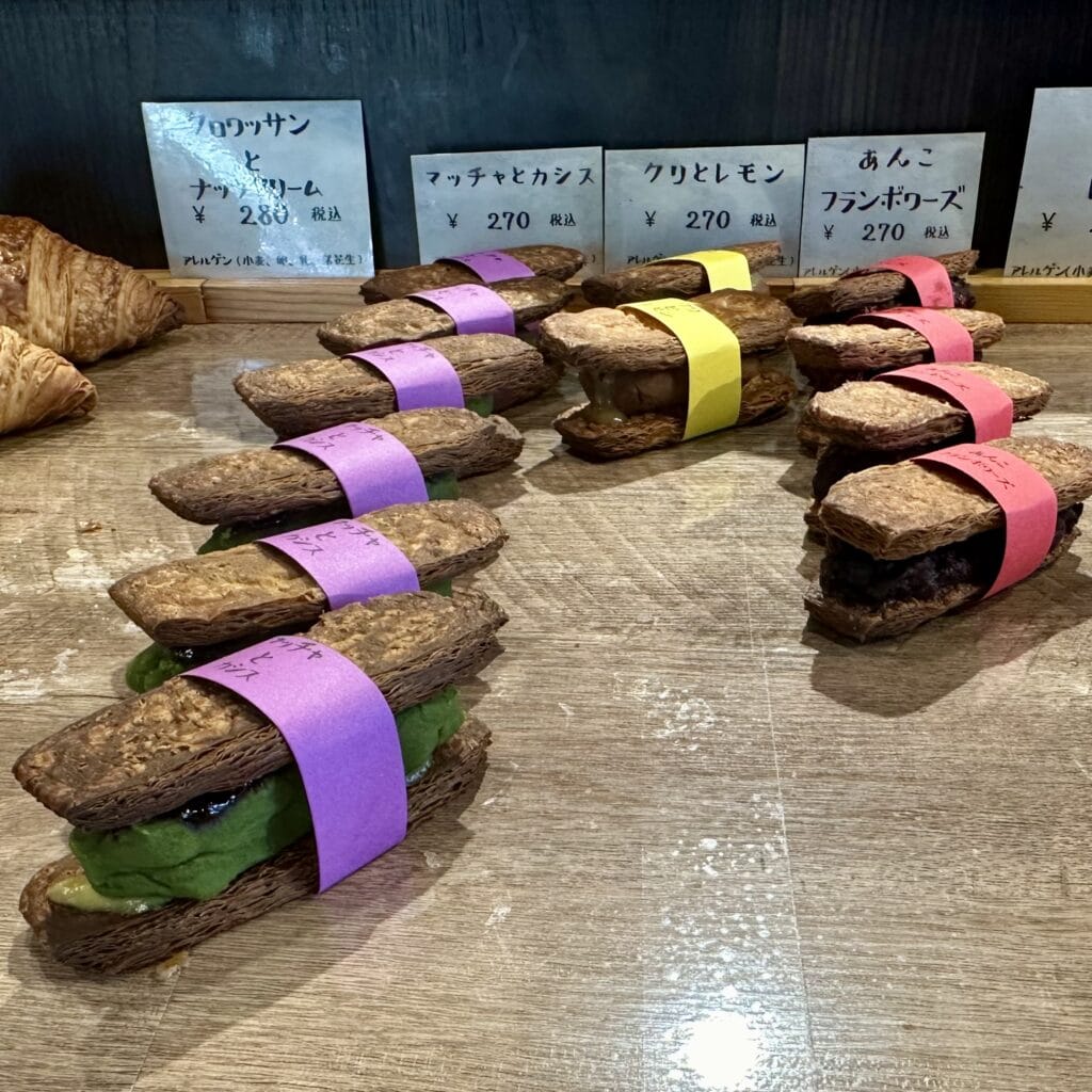 パイのように焼き上げたクロワッサン生地に「クリとレモン」それぞれのクリームがサンドされています。酸味と上品な甘み、ザックザクの生地が楽しい一品です。