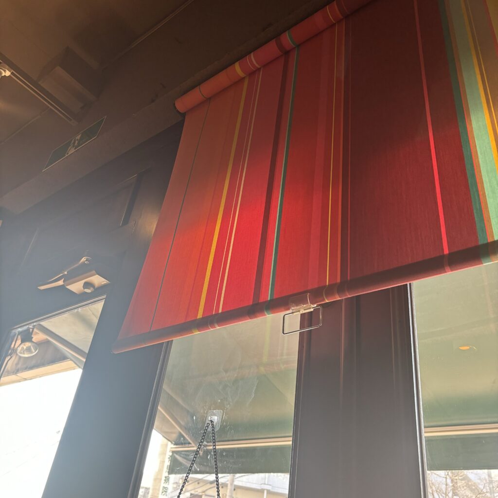 店内のロールカーテンは、レ・トワール・デュ・ソレイユの生地!