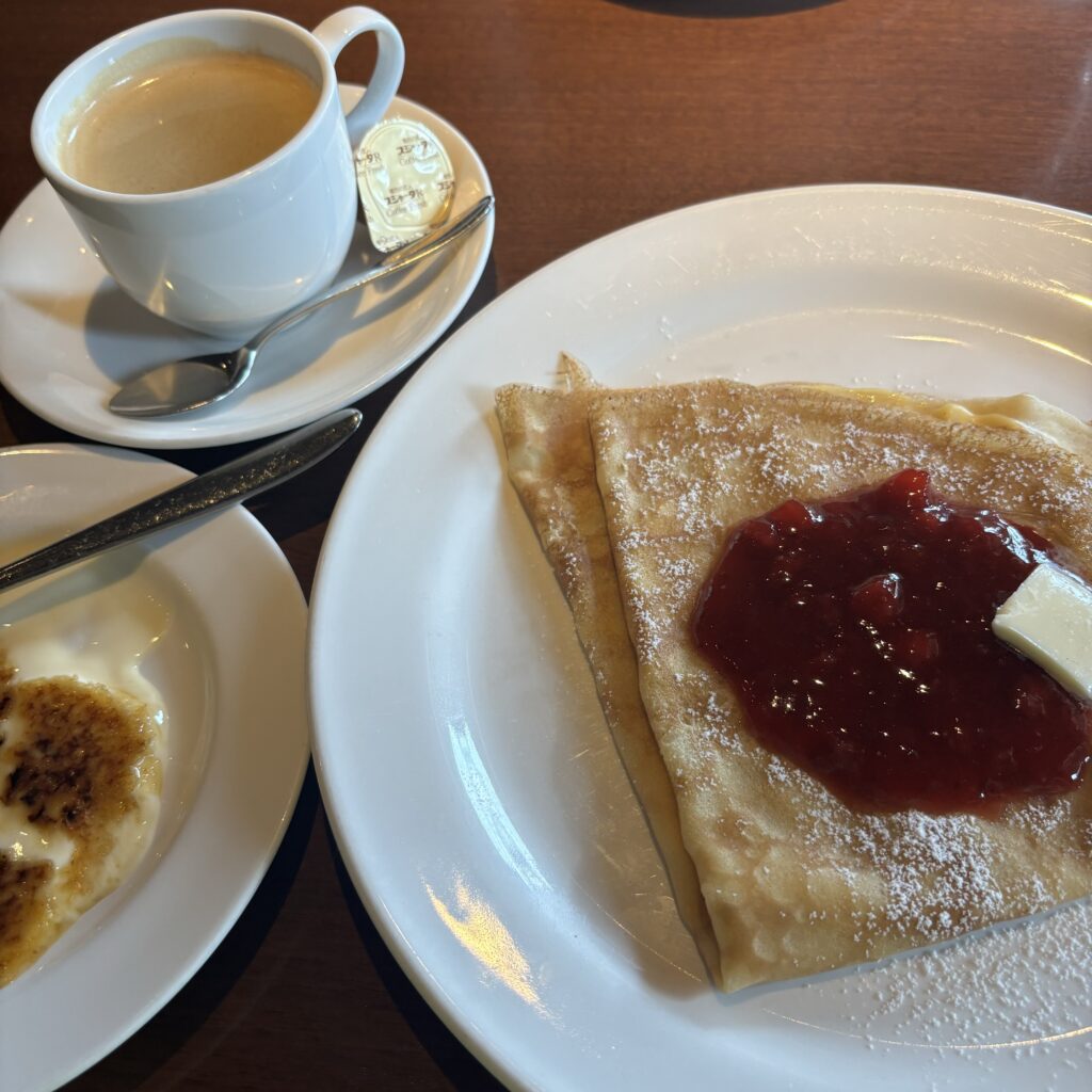 結局シュガーバターのクレープを追加注文して、クレープは1枚ずつ食べた上でクレームブリュレも半分こしました!!笑