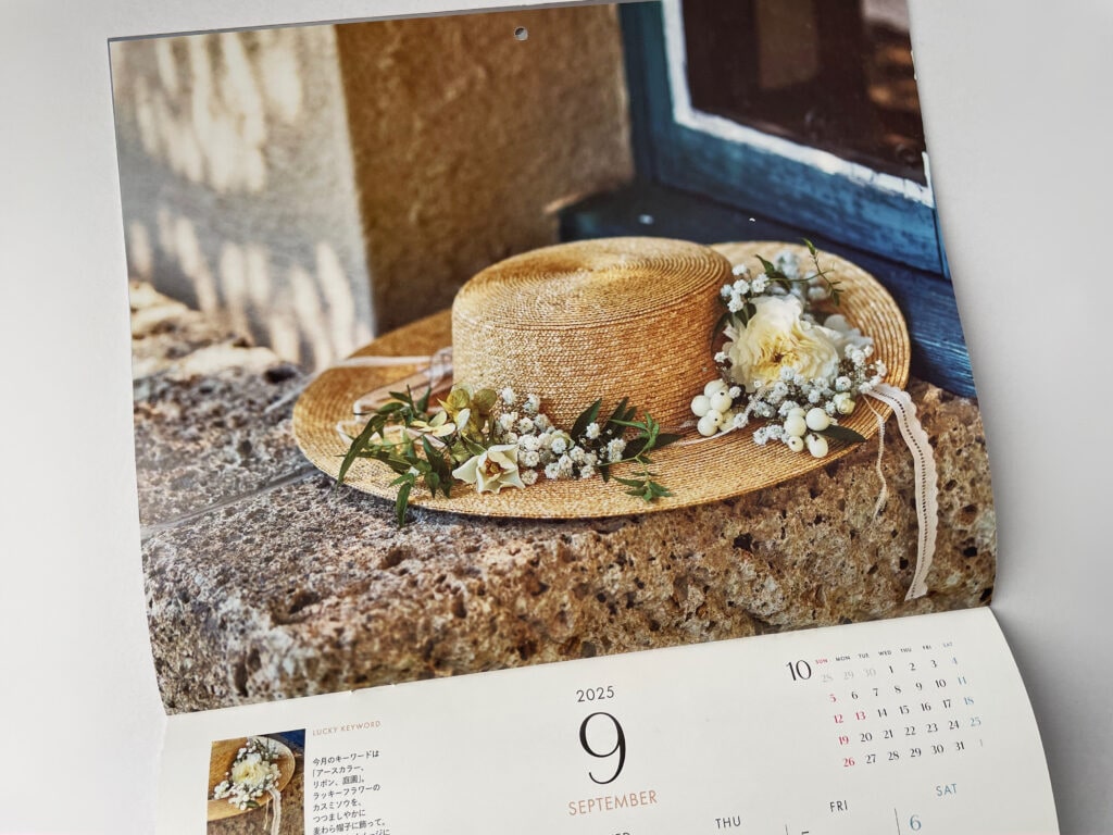 私が特に好きな月をご紹介致したく…。6月のアジサイは毎回大好きです。9月の麦わら帽子へのフラワーアレンジがとっても鮮烈!