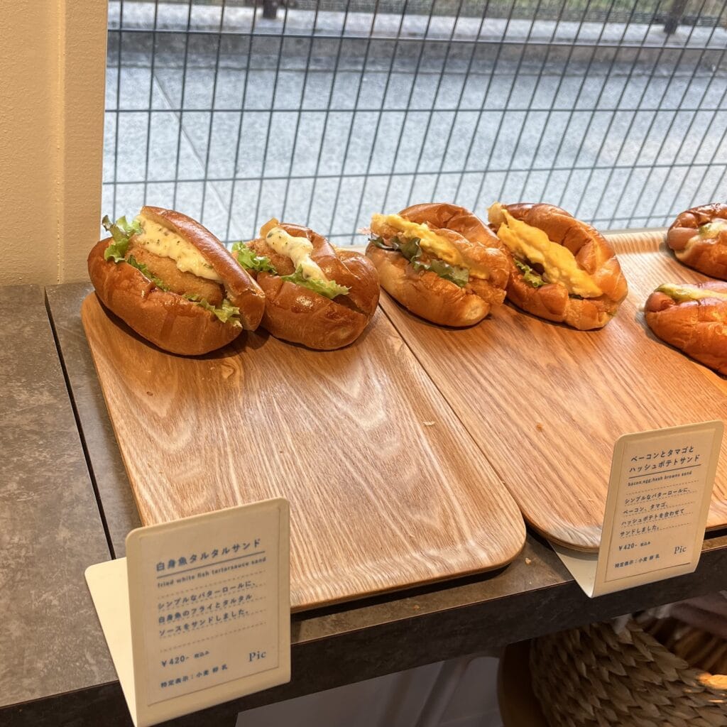 ↑奥の左側がベーコンとタマゴとハッシュドポテトサンド、右側が白身魚タルタルサンドです。