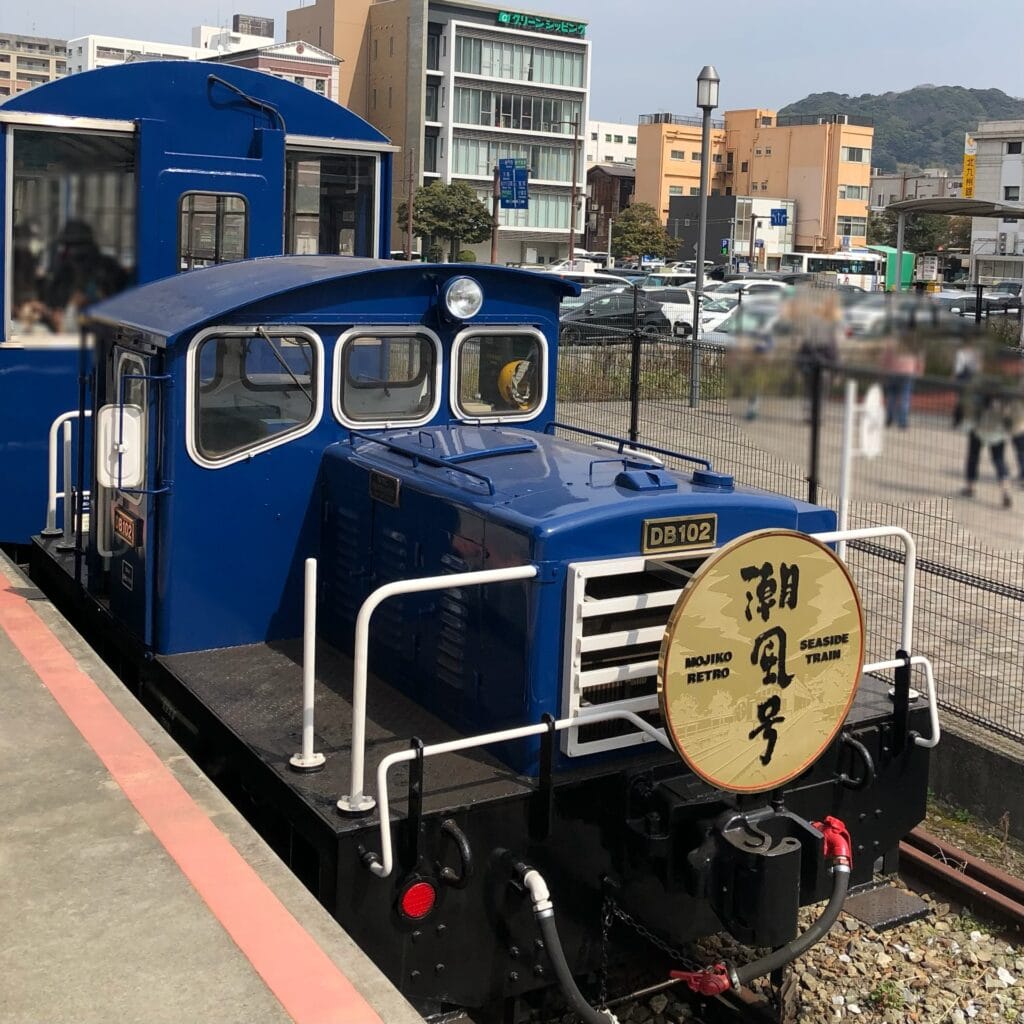 ↑こっちがトロッコ列車・潮風号。門司港駅近くの九州鉄道記念館駅から、この関門海峡めかり駅をつないでいます。土日祝のみの運行です。