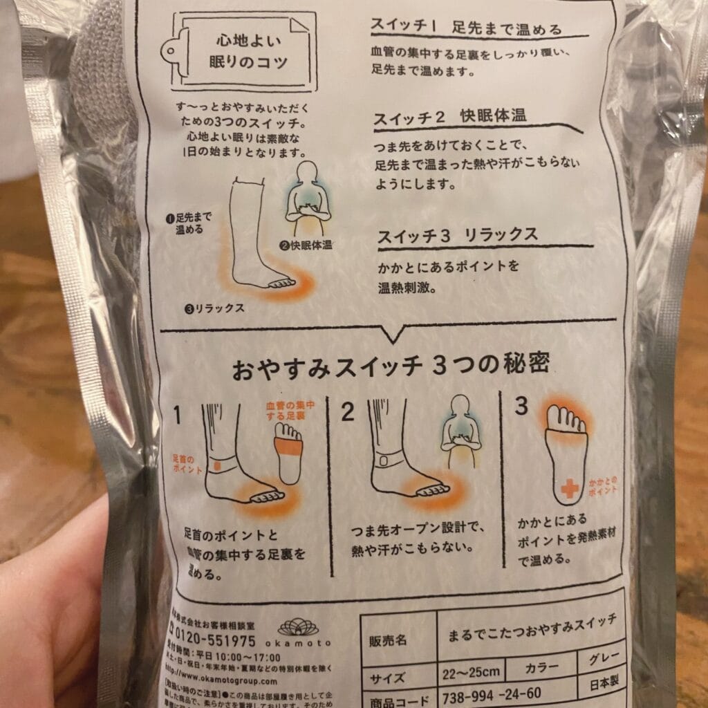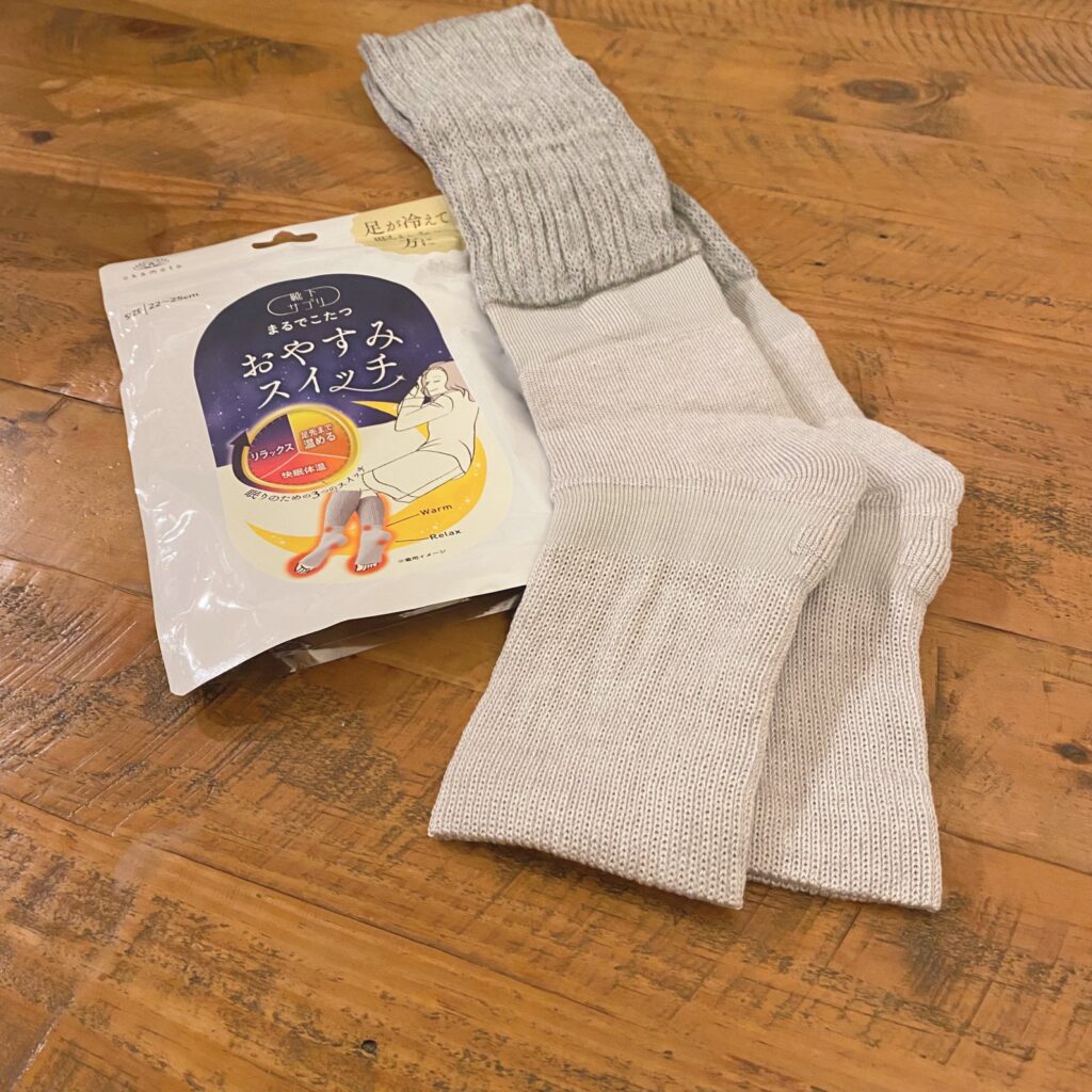 新しく仲間入りしたのは【まるでこたつソックス】のおやすみスイッチという就寝時に着用するタイプの靴下。今までのものも就寝時にも履いたりしていましたが、より快適に履くことができる設計になっています。