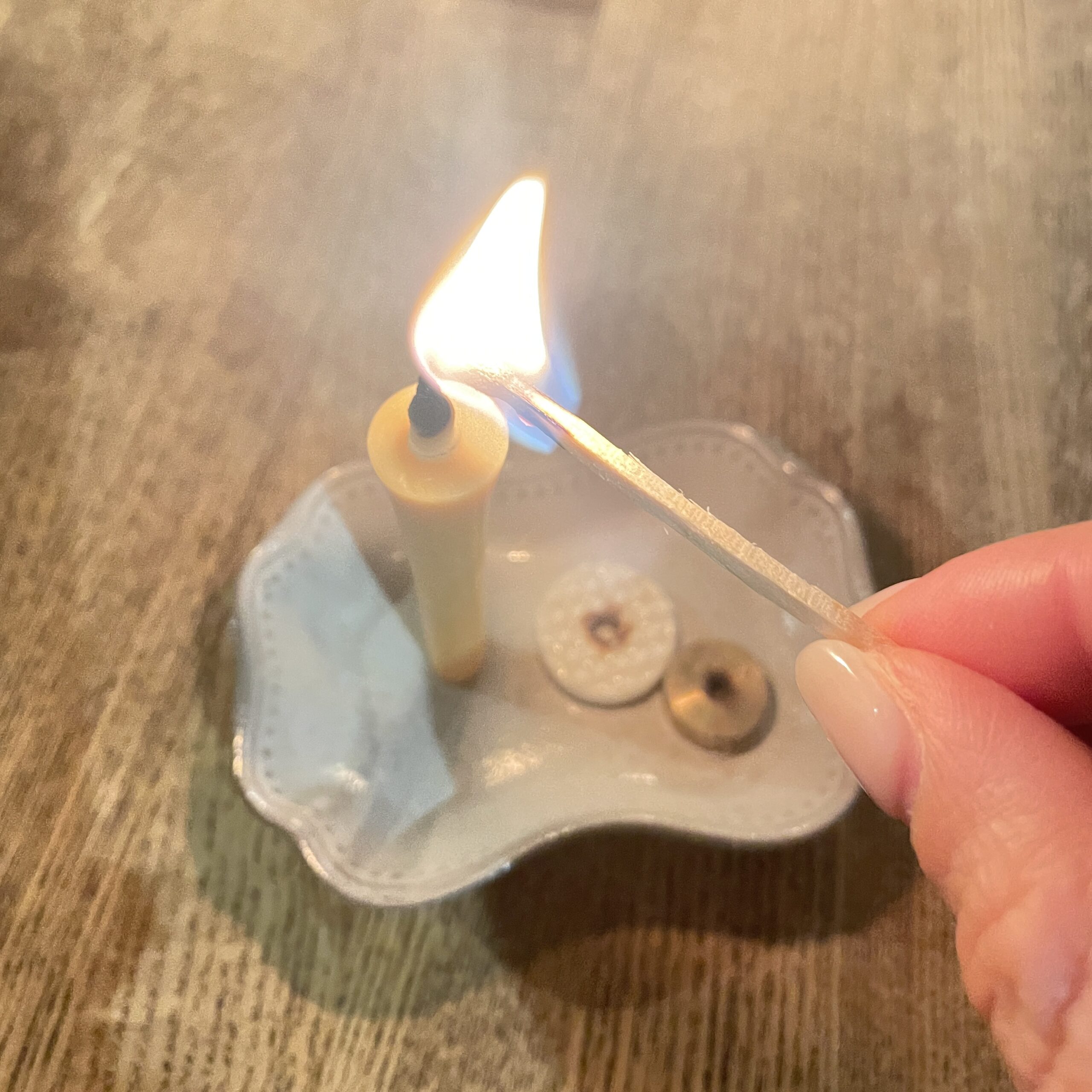 ちなみに和ろうそくは、消えにくい、芯が炭化して残るという特徴があるので、消火するときは吹き消すのではなく、芯を切るようにして消火するのが良いようです。