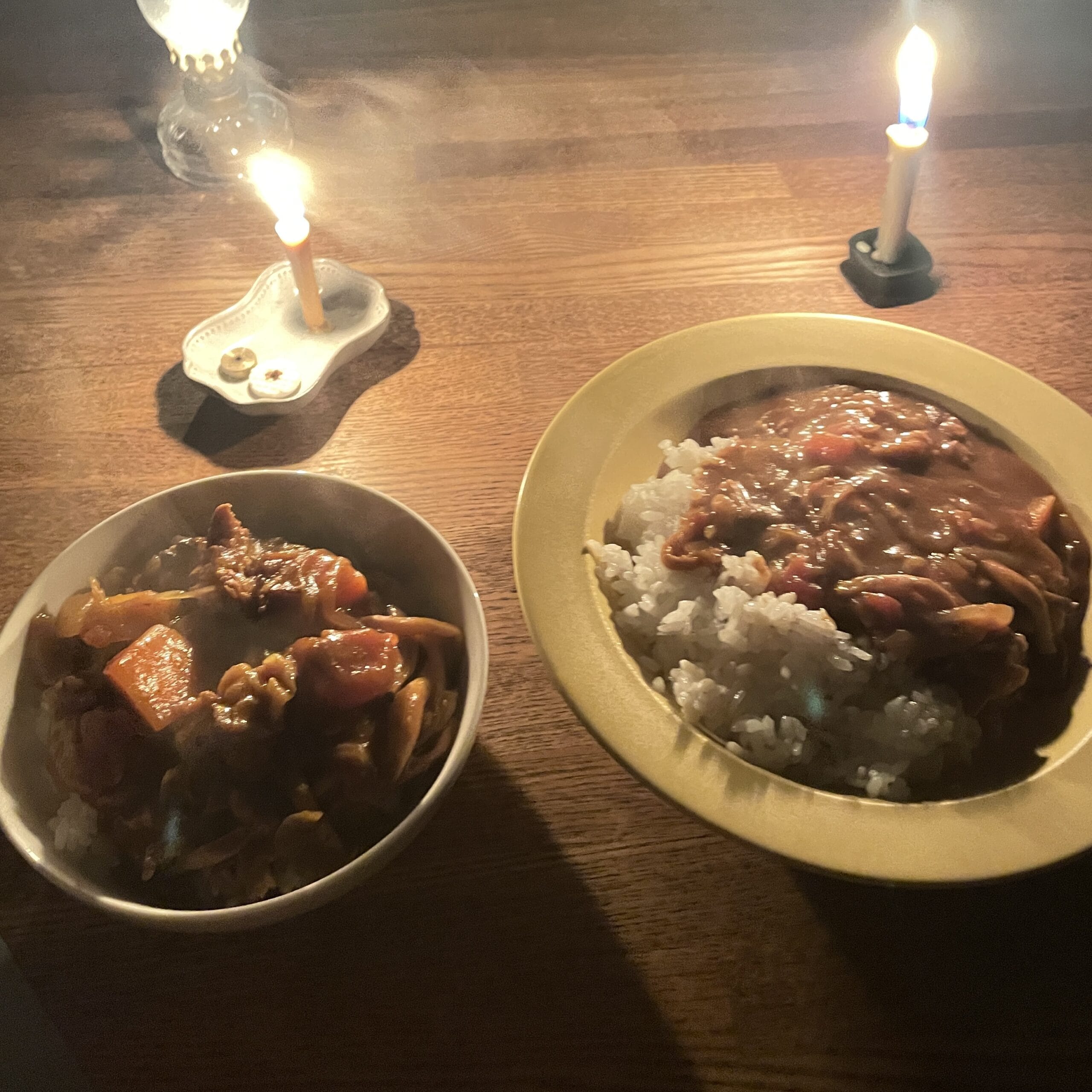 初めての試みだったので、食べやすいカレーの日にろうそく夕飯をしてみました。