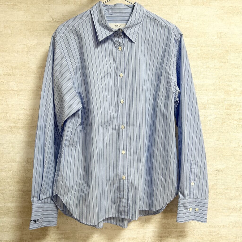 こちらSLOBE定番のレギュラーシャツですが、オリジナルのストライプ柄と刺繍がポイントになっています!