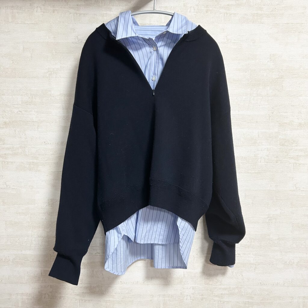 COLLAGE GALLARDAGALANTEのジップつきのセーター(色はネイビーです)の中に入れるもよし、