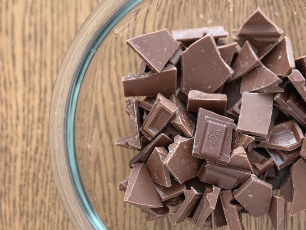 チョコレートを湯煎で溶かす工程の際、チョコを刻むことなく小さく適当に割りました〜