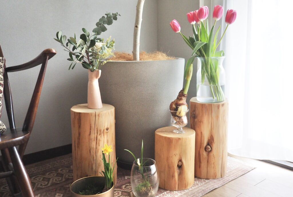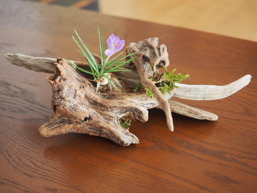 こちらは相模湖で拾った流木をグルーガンでくっつけた自作のオブジェと飾ってみました。