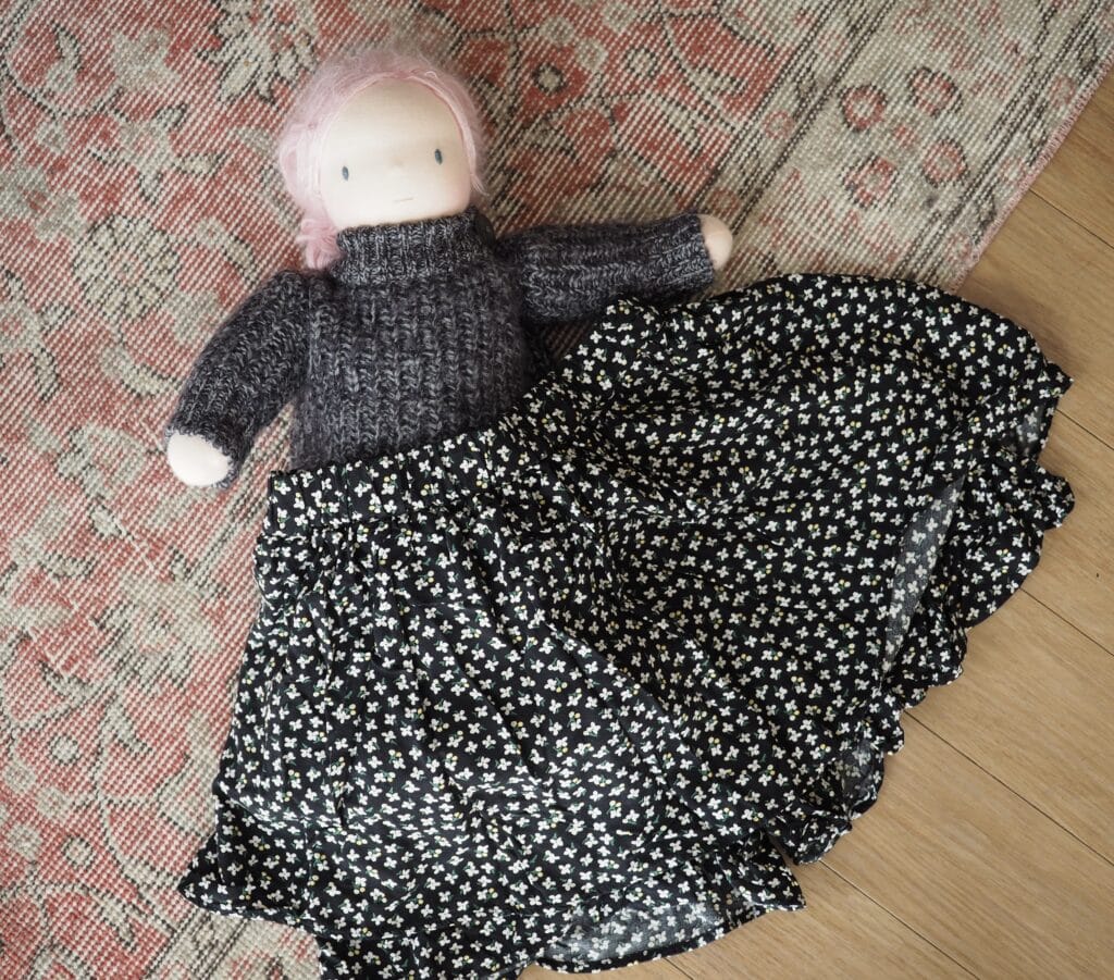 夫が着ていたセーターをウォルドルフ人形の洋服にリメイクしました。セーターだけどミシンで縫っていく簡単リメイク。