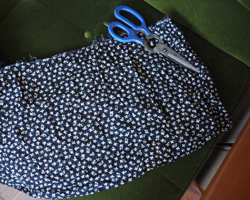 型紙はなしで、大胆にカット。襟と裾のリブは活かしていきます。たくさん着たセーターは程よくフェルト化していて解けないのでカットしやすかった!