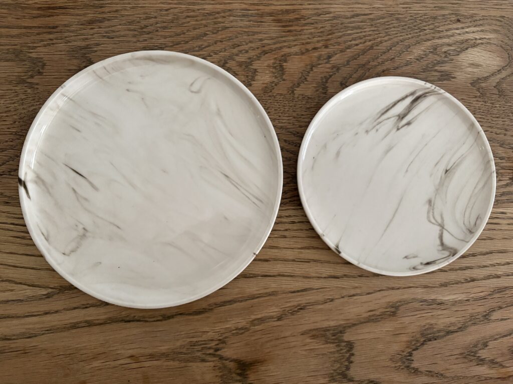 マーブル柄のお皿はたまに見かけるのですが、16cmは300円、20cmは500円とプチプラ♪さすがスリコ!オンラインでは在庫がないので見つけたら即買いアイテムです♪