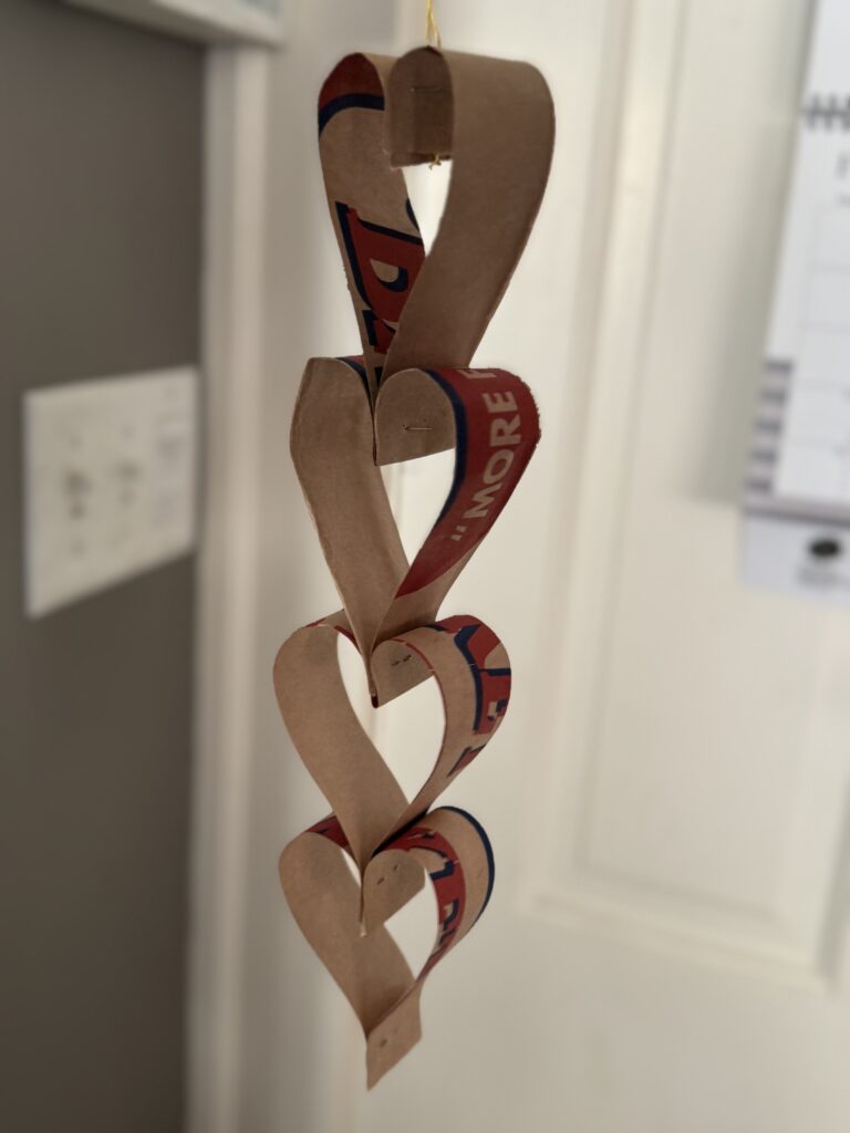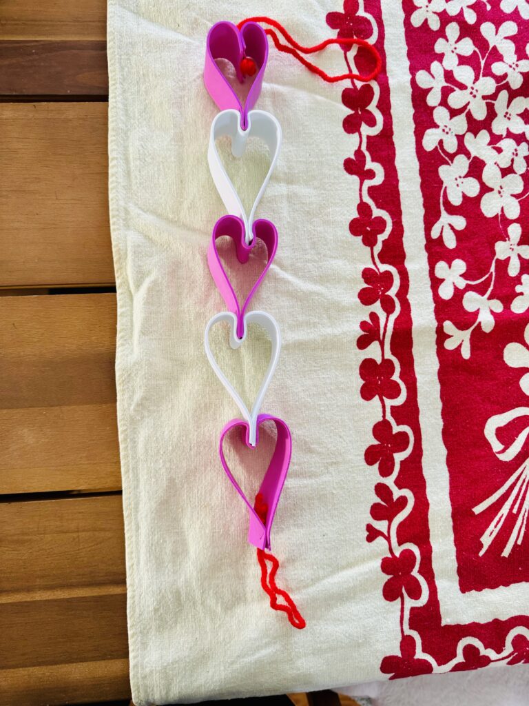 コレを繋げたいハートの数だけ続けます。モリモリ繋げてハートのカーテンを作っても。