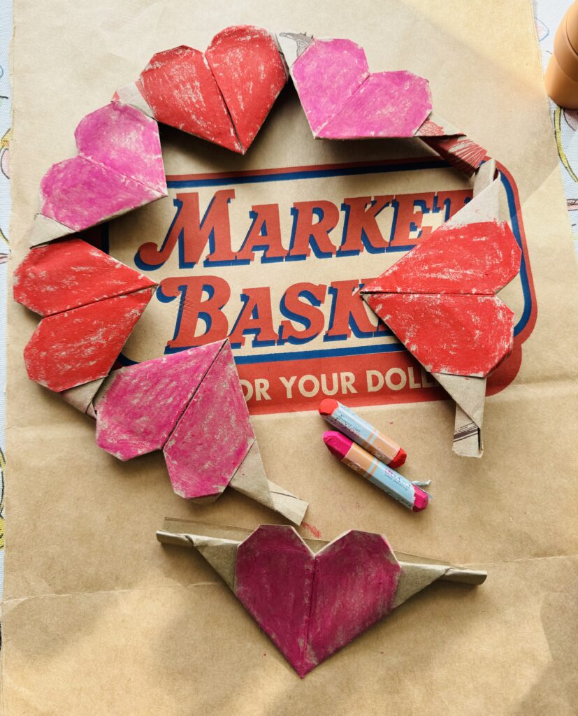 ハートのリースの折り紙は検索すると簡単にできるモノがたくさん出てきますので探してみてくださいね。