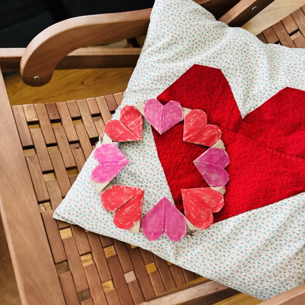 本屋さんの窓辺に飾られた古本のページで作られたハート飾りが可愛くて。真似っこしました、折り紙を使っても可愛いと思います。